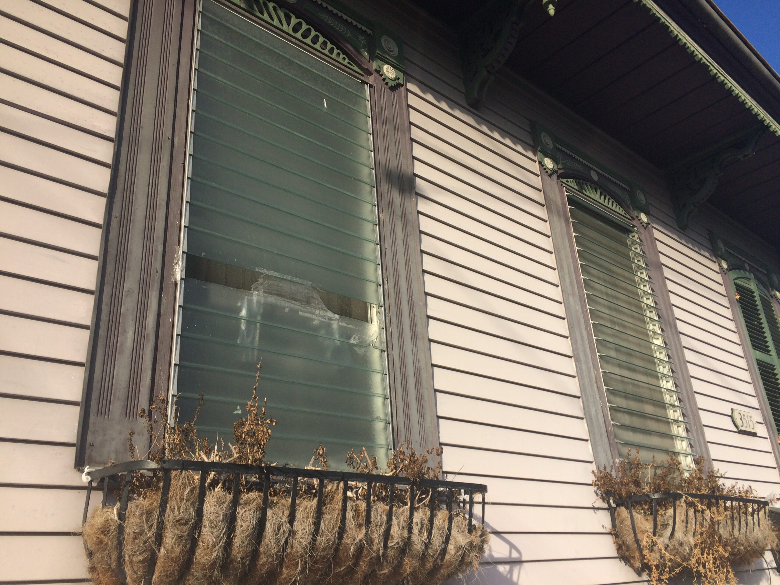 A jalousie window is a type of window that was popular in the mid to late 20th century, and composed of parallel glass or acrylic louvres set in a frame. The louvres are joined onto a track so that they may be tilted open and shut in unison to control airflow, usually by turning a crank. While they can be helpful for airflow, a pair of louvered shutters allow the same type of function while allowing someone to keep the historic integrity of their 19th century New Orleans home.