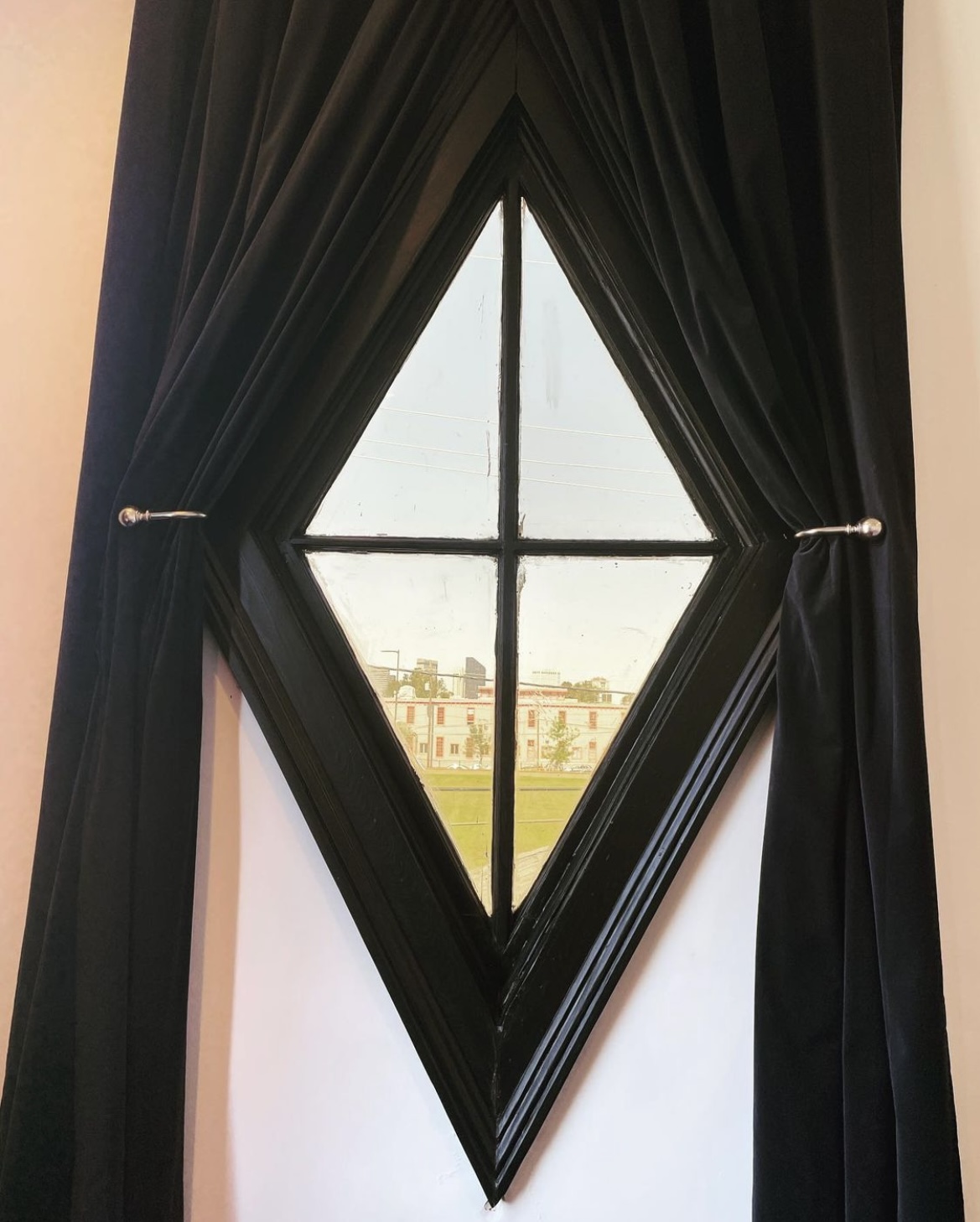 Like circular windows, diamond window units are not typically meant to function. They are instead meant to be viewing windows only. The two points of the jamb that come together to form the base of the diamond can have complications with leaking if not properly constructed and/or repaired over time. The Victorians favored these window types in stairwells.