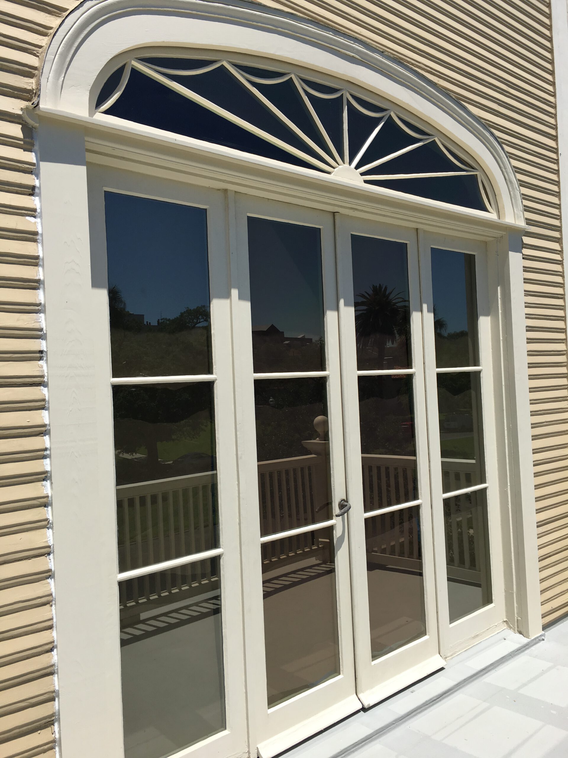 Located on exterior porches, this unique window type is a double-hung window unit that operates within an enclosed wall system to provide total clearance to walk through. Sometimes referred to in other areas as “pocket-windows,” they span from the top of the jamb all the way to the floor with the lower sash being taller than the upper sash. When a person wishes to exit onto the balcony or porch, they can lift the lower sash until it slides through a “slip-head” at the top of the jamb and into a hidden compartment. Aside from the size differences and the pocket, these windows function just the same as typical double-hung units.